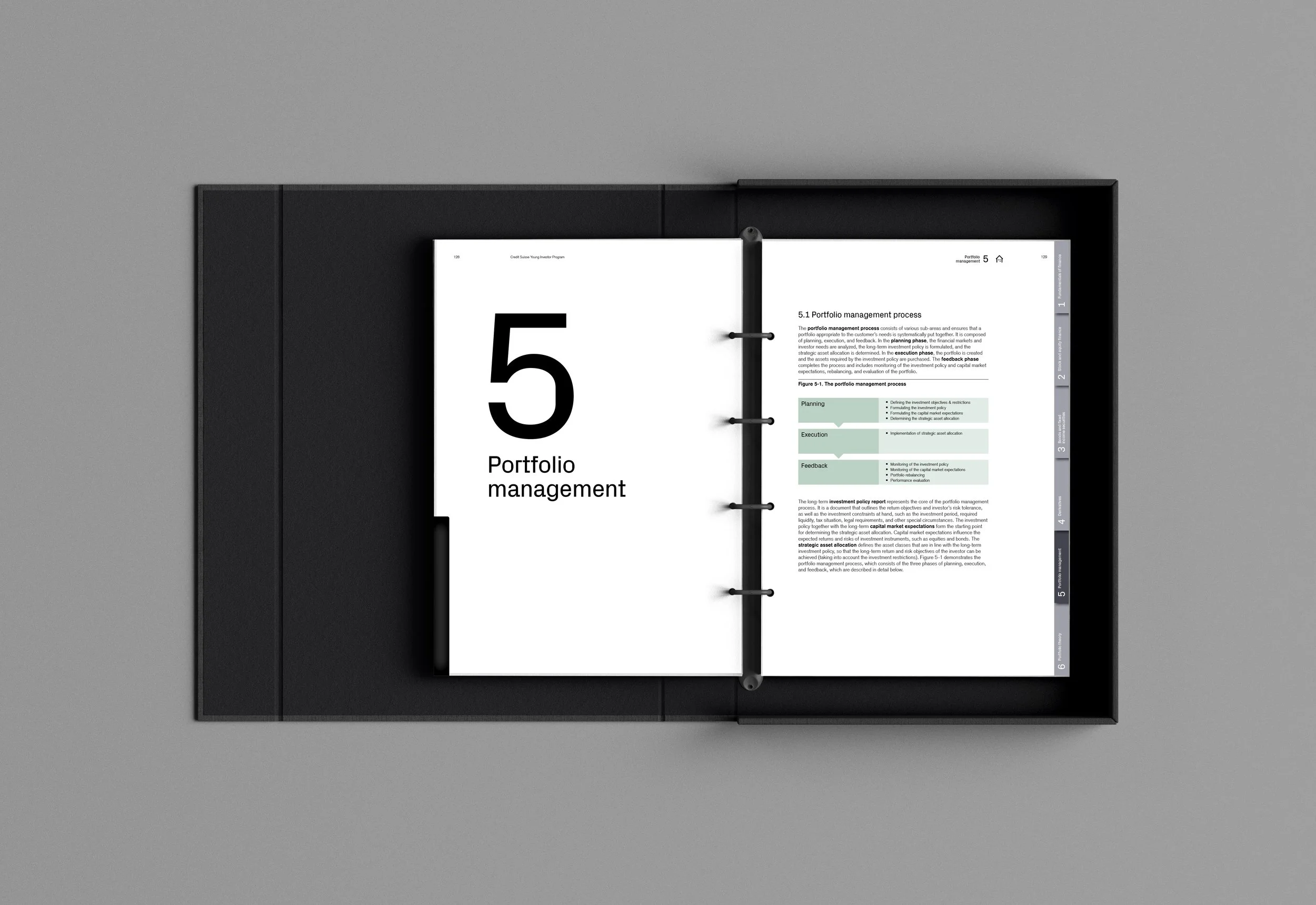 We also structured the chapters with punched indexes, color-coded sections and a consistent visual hierarchy that provides both orientation and a reading aid. The handbook was printed in a flexible binding, making it easy to use like a workbook - even over long periods of time.