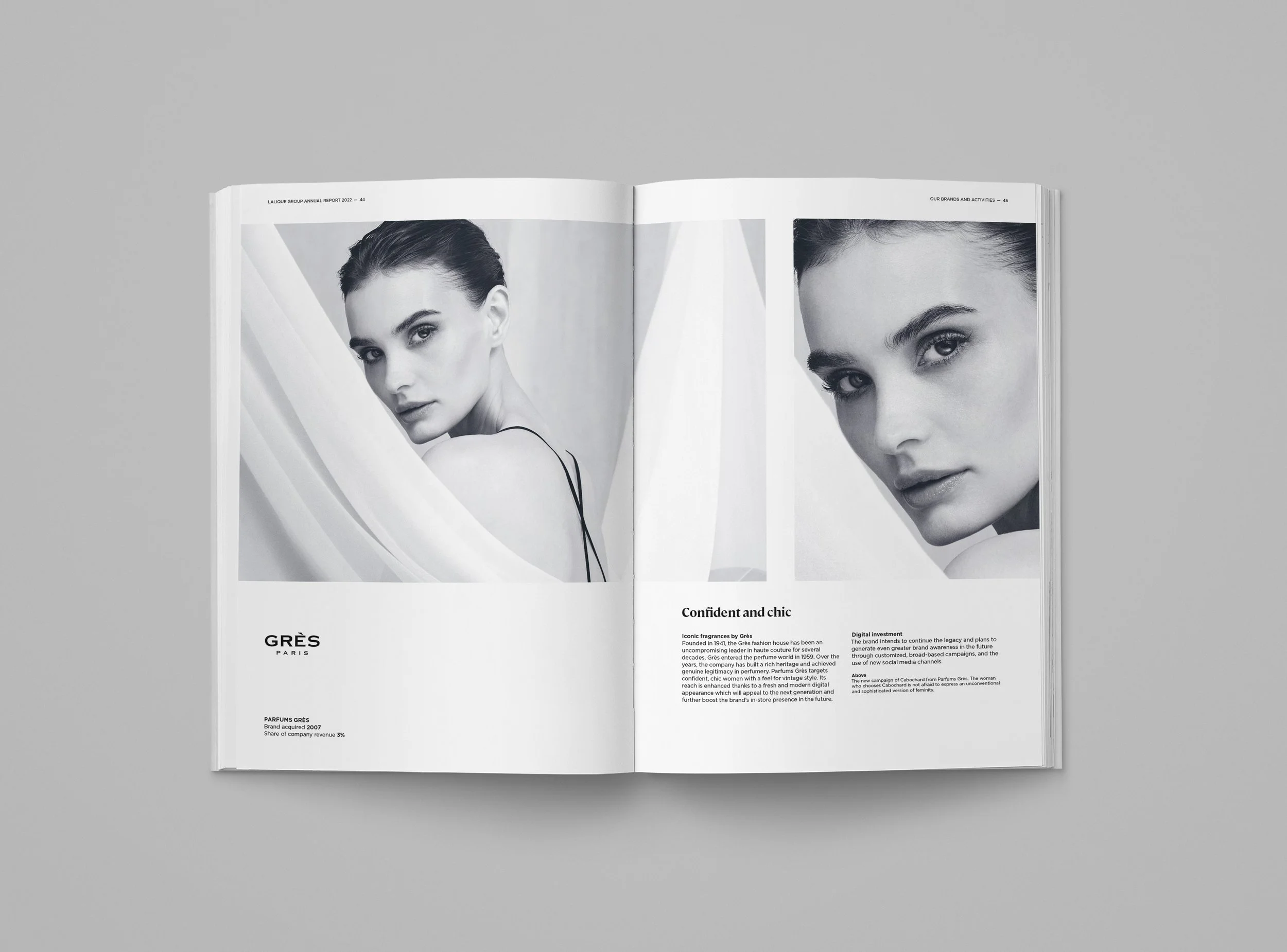 The report always followed the same structure: a presentation of the company figures, followed by the most important highlights and new products from all the Lalique Group brands - including Bentley Fragrances, Parfum Grès, Ultrasun and Jaguar Fragrances. It was precisely this conceptual consistency that made the design task particularly challenging: how do you create something new over ten years without repeating yourself?