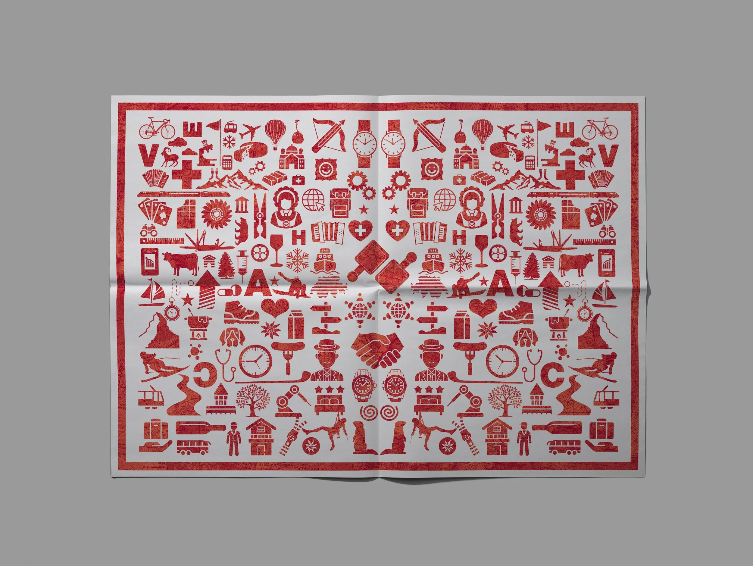 This creates a personal, yet abstract level: the patterns visualize what the individual people deal with in their everyday work - from event planning to media work to collaboration with partners. At the same time, they convey relevant content about Switzerland as a travel destination: nature, cuisine, mobility, culture, authenticity.